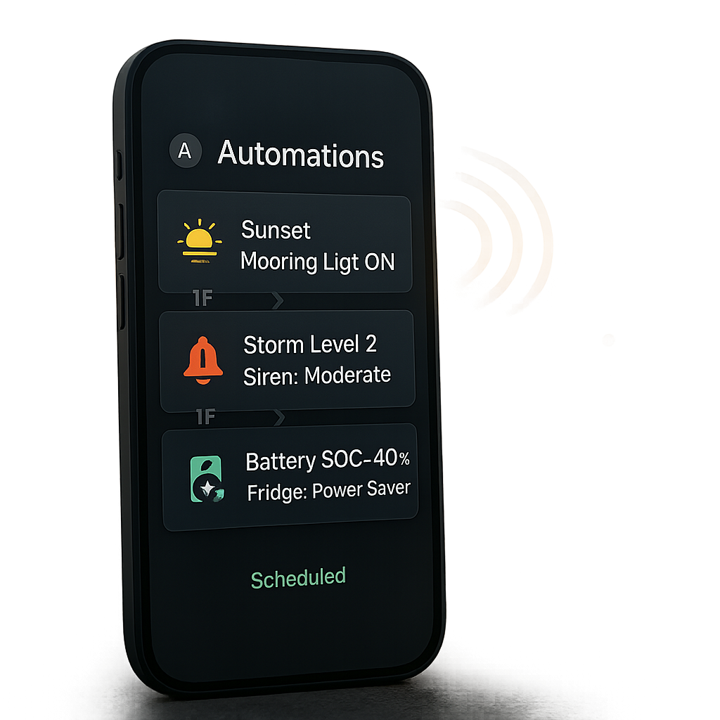 A Nauware BoatAssistant rendszere rugalmasan alakítható: válassz a számodra fontos funkciók közül, állíts be okosriasztásokat és automatizmusokat és irányíts mindent egyetlen alkalmazásból vagy akár egy számítógépről.